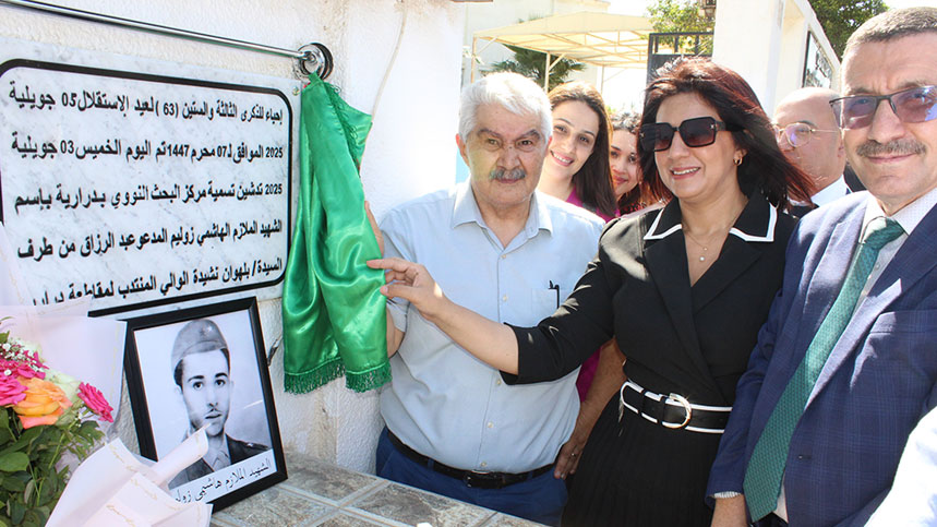 The ceremony was marked by the unveiling of an elegant commemorative plaque bearing the name of the chahid hero at the entrance to the center, as a tribute to him and to encourage future generations to continue the march of science and construction.