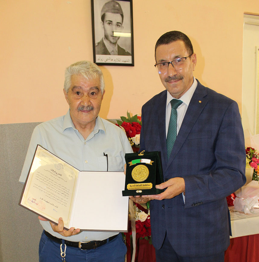 On a historic and loyal day, Thursday, July 3, 2025, the Nuclear Research Center of Draria was renamed in honor of the chahid and hero Hachimi Zoulim, in accordance with the provisions of Decision No. 4321 of August 13, 2024, which announced the creation of a provincial commission tasked with studying and ruling on proposals for the naming or renaming of the commune of Draria. This landmark event, which links the legacy of the Algerian revolution to the future of scientific research, took place in the presence of the Commissioner of Atomic Energy, the Deputy Wali of the administrative district of Draria, the President of the communal popular assembly of Draria, the Secretary of the Organization of the Sons of chouhada of the district of Draria, Mr. Zoulim Abdelmadjid, son of the chahid, as well as officials from the Atomic Energy Commission, the Nuclear Research Center of Draria, the Algerian Institute for Nuclear Engineering Training, and the Nuclear Security Training and Support Center.