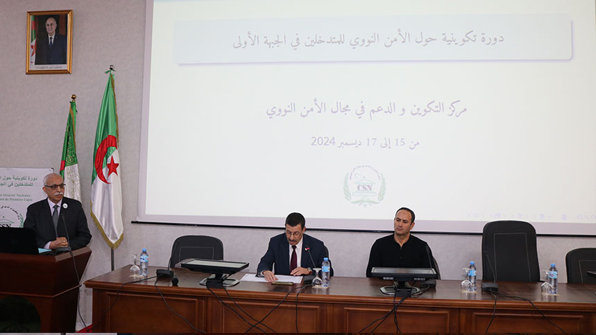 Monsieur le commissaire Dr. Abdelhamid Mellah, a procédé, le dimanche 15 décembre 2024 à 9h00, à l’ouverture du cours sur la sécurité nucléaire pour les intervenants de première ligne, organisé par le centre de formation et d’appui à la sécurité nucléaire (CSN) du 15 au 17 décembre 2024 au centre de recherche nucléaire d’Alger. Ce cours aborde les notions théoriques et opérationnelles relatives à la détection de la matière radioactive et aux techniques et procédures administratives qui leurs sont liées.